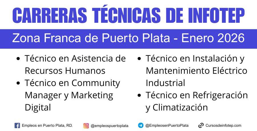 - 1.0.2 Carreras técnicas gratis de Infotep disponibles en la Zona Franca Puerto Plata: Enero 2026